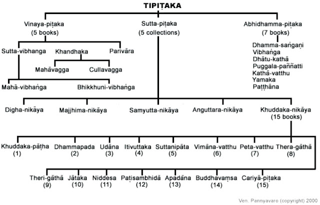 The general discourses and sernxms intended for bath the bhikkhus and lay disciples, delivered by the Buddha on various occasions ( together with a few discourses delivered by sOJOO of his distinguish6d disci~ plea ), are collected and classified in a great division known as the Suttanta Pit•aka • The great division in which nre incorporated injunctions and adJoonitions of the Buddha on modes of conduct, and restraints on both bodily and verbal actior of bhikkhus and bhikkhunls, which form rules of discipline for them, is called the Vinaya Pi~aka. The philosophical aspect of the Buddha IS TeaChing, IOOre profound and abstract than the discourses of the Suttanta Pi~aka, is classified under the great division known as the AbhidhaDm9 Pitaka. AbhidhallllIfl deals with ultimste Truths, expoums U• lti.uete Truths rind investigates Mind and Matter and the relntionship between them. All that the Buddha tauf'1t forms the subject DBtter and substance of the Pali Canon, which is divided 1nto these three divisions· called Pi~akas lite!' 8l.l¥ baskets. Hence Tipi~eka means three baskets or three separate div1eiona of the Buddha Is Teaching. Here GT, F.1 the metaphor 'basket' signifies not so much the funct.ion of 'storing up' anything put into it as its use 88 8 receptacle in which things are handed on or passed on from one to another like carrying away of earth from an exc!lvation site by a line of workers. The Tipit.aka into which the Pa.li Canon is ~ / 3Y15telMtically divided and handed down from generation' to gen~ration together with Commentaries forms the huge collection of literary works which the bhikkhus of the Order hDve to leern.. study and memorize in discharge of their gantha dhura .. the duty of studying • •